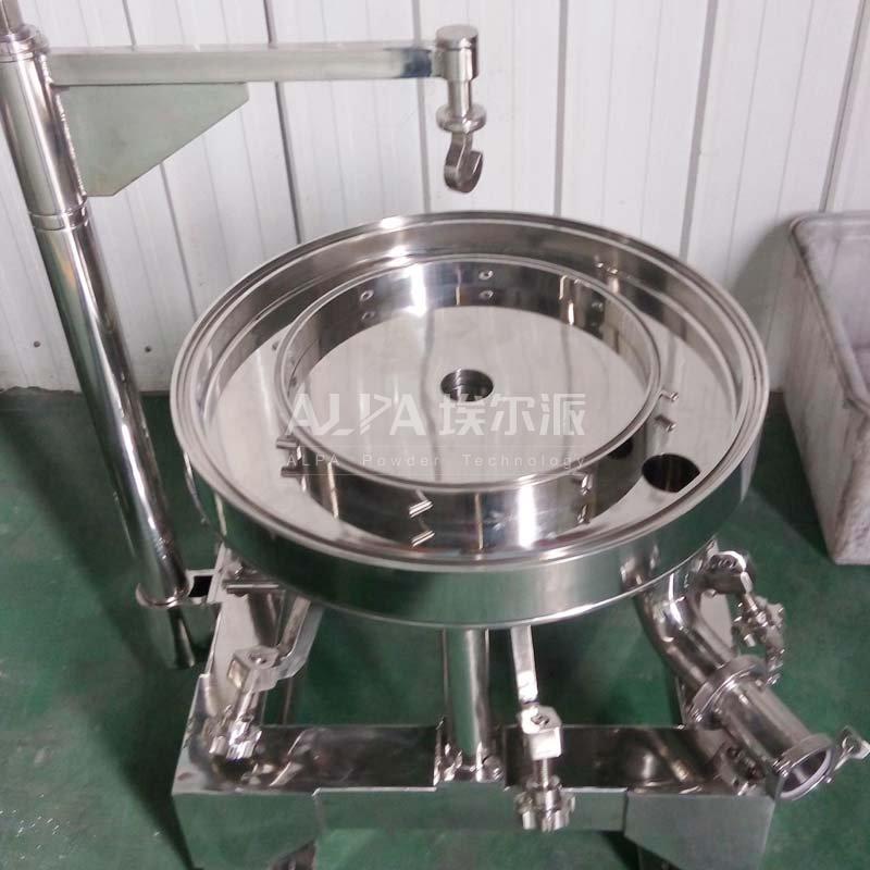 螺旋氣流粉碎機(jī)利用壓縮氣體通過加料噴射器,將粉碎原料帶入粉碎室,在多個噴嘴噴射的高速氣流帶動下以切線的方式噴射到粉碎壁上,達(dá)到摩擦粉碎效果。通過調(diào)節(jié)粉碎室縱向深度、調(diào)節(jié)粉碎壓力或者加料速度,來控制粉碎細(xì)度。相對流化床氣流粉碎機(jī),粉碎細(xì)度的可控性差一些。